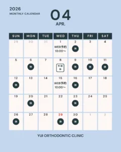 2026年4月の休診日をお知らせいたします。